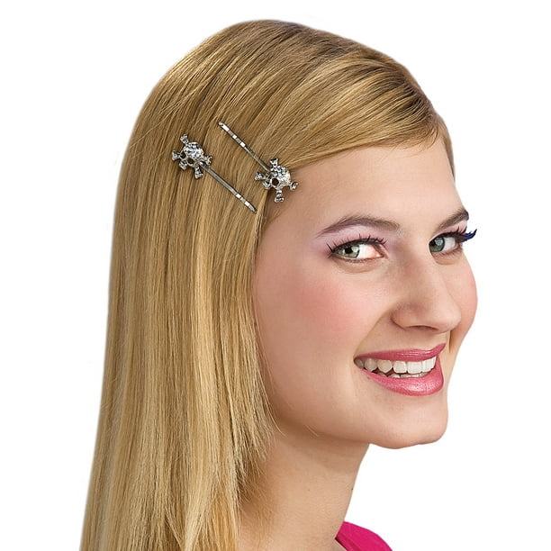 Gothic Accessory Silver Skull Hair Pin With Rhinestone Jewels Walmart Com